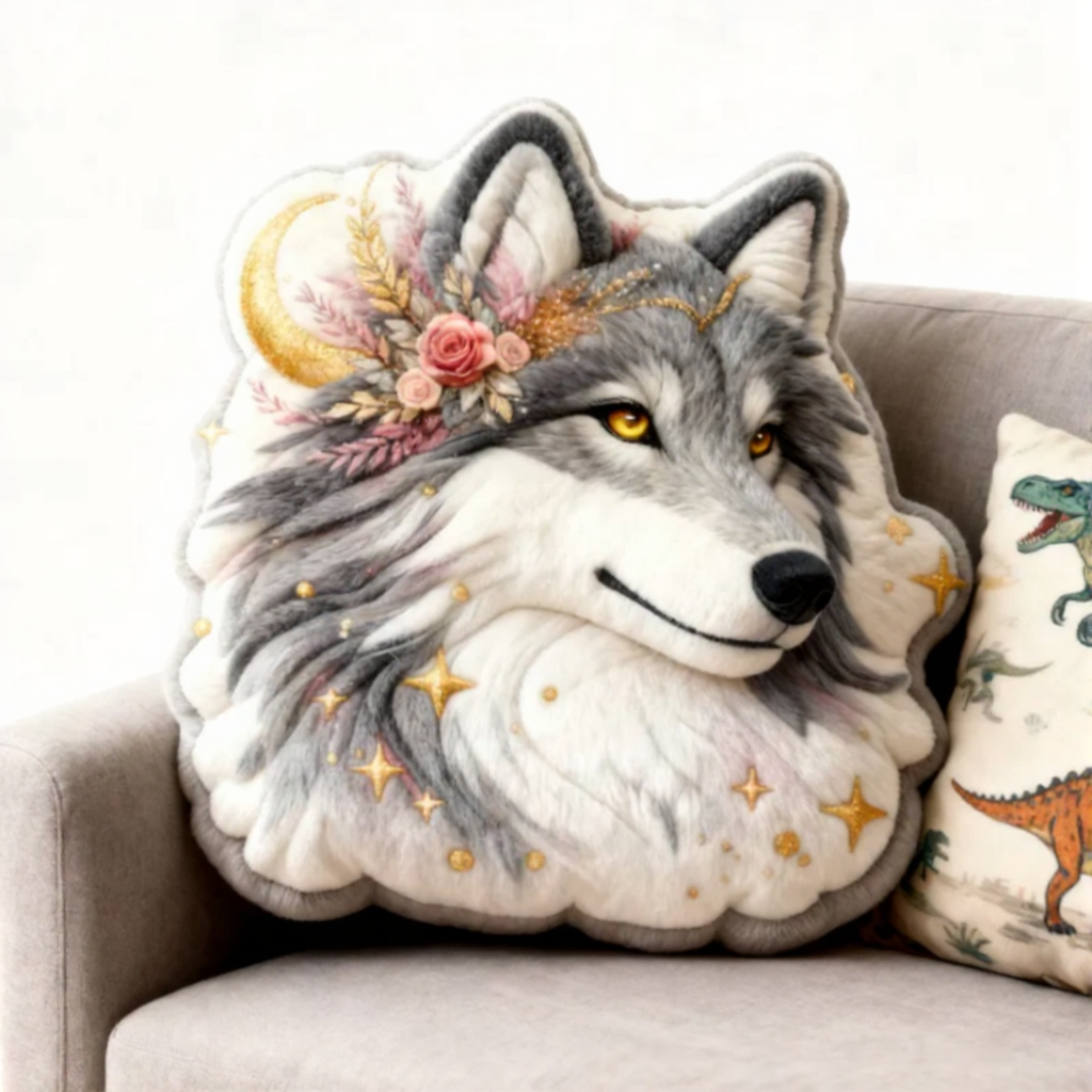 Personalized Elegant Celestial Wolf Cushion Pillow Sparkling Wolf Pillow Gift for Kid Outdoor Nature Lover