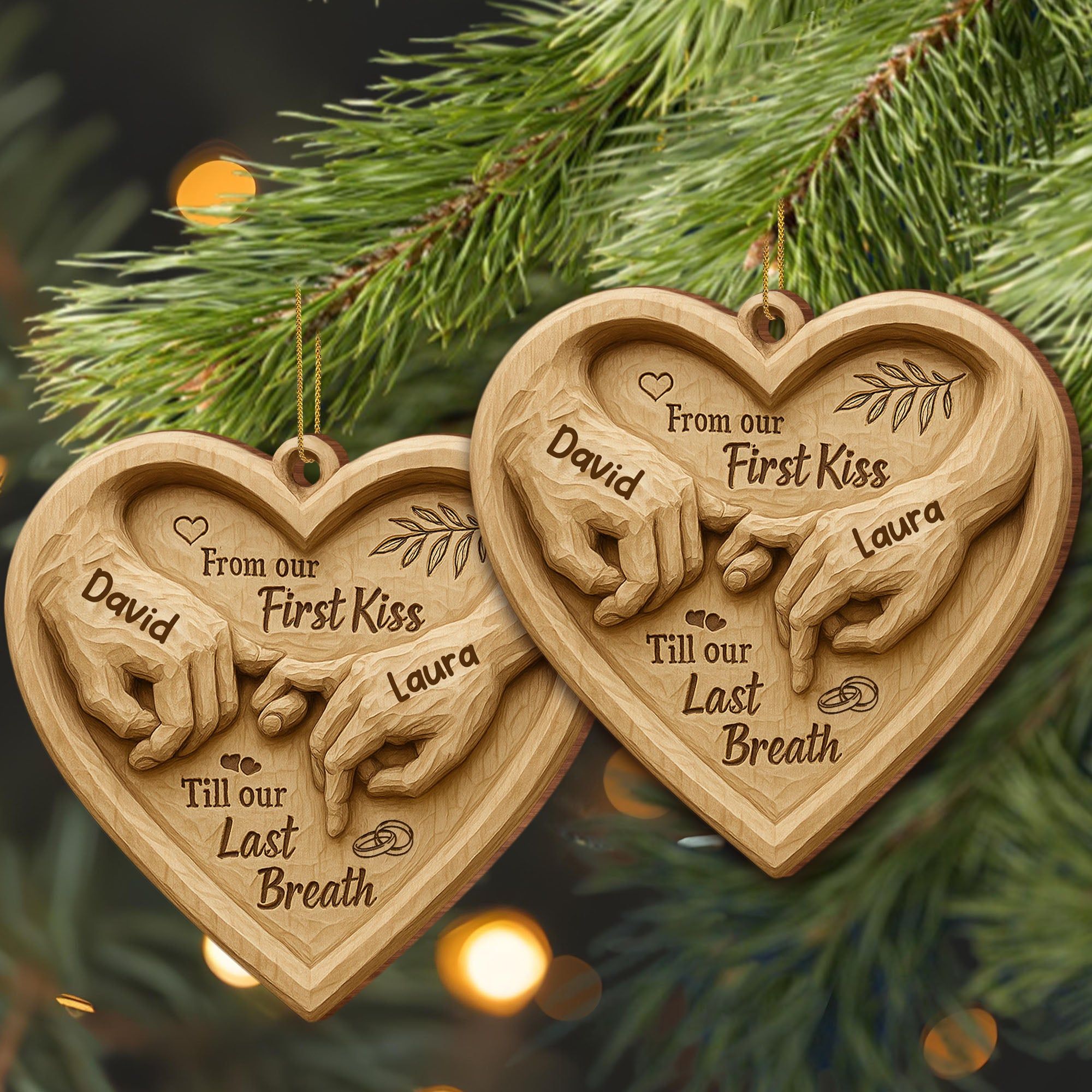 Message: From Our First Kiss Till Our Last BreathNote: Due to differences in monitor settings and lighting, the actual color may vary slightly. This is a printed wood ornament with a faux 3D effect that adds depth and a premium finish.